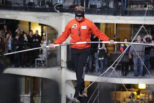 Nik Wallenda cruzando el cielo de Chicago con los ojos vendados