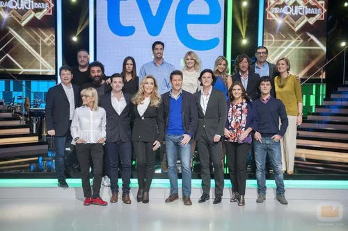 Jaime Cantizano posa con los concursantes, jurado, coach y directivos.