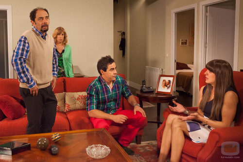 (9x05) Alba Recio (Víctor Palmero) llora desconsoladamente frente a sus padres y Amador en 'La que se avecina'.