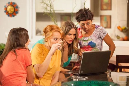 (9x07) Las chicas cotillean en la casa de Raquel y Nines, en el ordenador, al nuevo ligue de Judith en 'La que se avecina'.