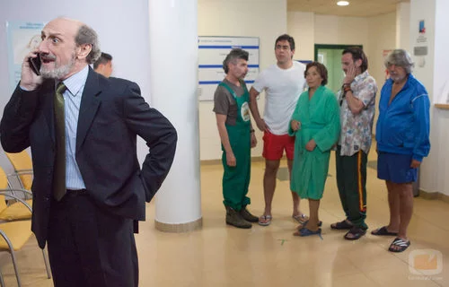 (9x07) Enrique Pastor, muy enfadado, habla por teléfono desde el hospital con sus vecinos de fondo en 'La que se avecina'.