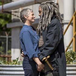 Ezekiel y Carol sobre un escenario en la novena temporada de 'The Walking Dead'