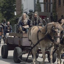 Carol y Ezekiel en un carro tirado por caballos en la novena temporada de 'The Walking Dead'