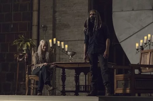 Ezekiel y Carol sobre un escenario en la novena temporada de 'The Walking Dead'