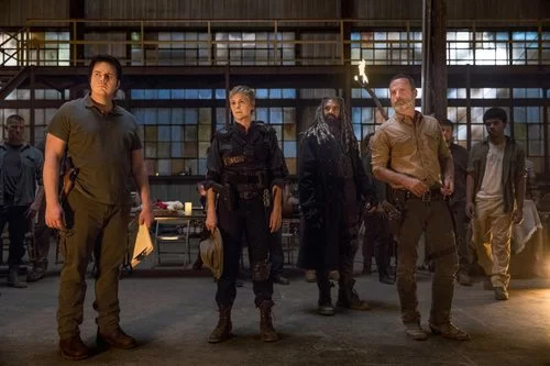 Varios protagonista de 'The Walking Dead' en el refugio que pertenecía a los Salvadores de Negan