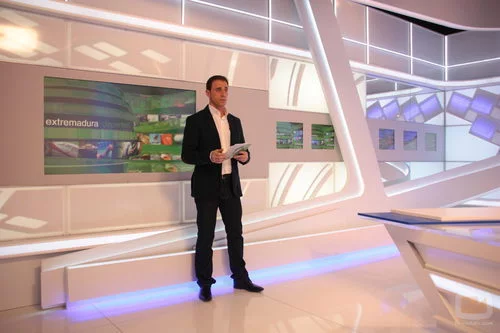 El presentador de 'Extremadura deportes', José María Maldonado, en el nuevo plató de informativos de la cadena autonómica.