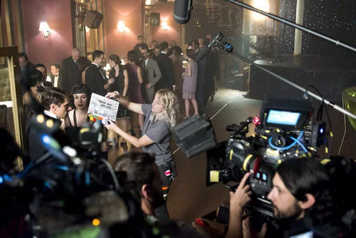Imagen del rodaje de 'Las chicas del cable' en la que puede apreciarse a la actriz Blanca Suárez rodeada por todo el equipo de grabación.