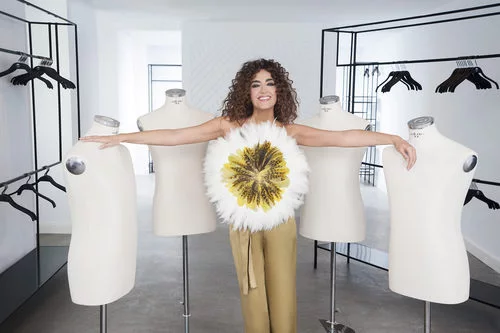 Cristina Rodríguez lleva una camiseta de plumas para el nuevo formato de Telecinco 'Cámbiame Challenge' que enfrenta al jurado del actual programa 'Cámbiame' para realizar un cambio con un tiempo y un presupuesto limitado.