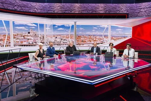 Antonio García Ferreras posa con los colaboradores de 'Al rojo vivo' en el nuevo plató que el programa ha estrenado el 10 de septiembre.