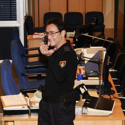 Álex Hernández vestido de policía