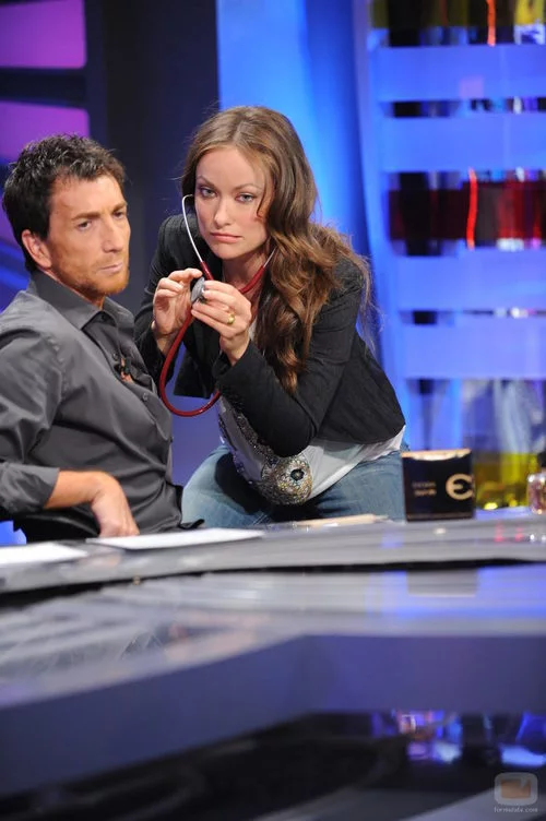 Olivia Wilde ausculta a Pablo Motos durante su visita a 'El hormiguero'.
