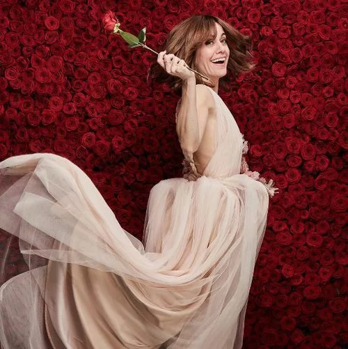 La actriz Alexandra Jiménez posa sonriente en los premios Goya 2017 organizados por la Academia de Cine. En la mano lleva una rosa.