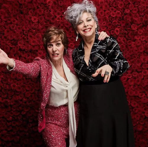 Anabel Alonso y Kiti Mánver, ambas actrices españolas, posan para la gala de los premios Goya 2017. Aparecen sobre un fondo de rosas.