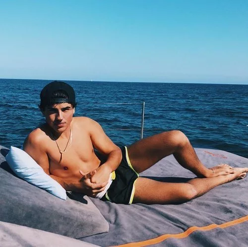 El actor de 'Instinto' luce torso desnudo en una fotografía en bañador con el mar de fondo.