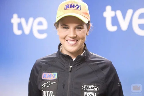 La piloto de trial posa en la rueda de prensa de presentación del programa de La 2 de Edurne Pasabán.