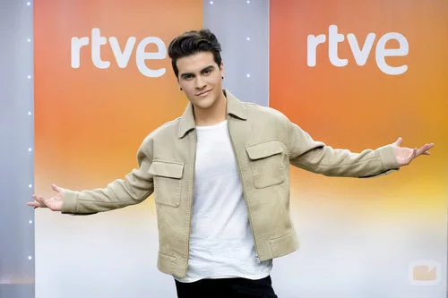 El cantante, que mostraba su entusiasmo abriendo los brazos, posó en la presentación que TVE realizó con motivo de 'Objetivo Eurovisión'.