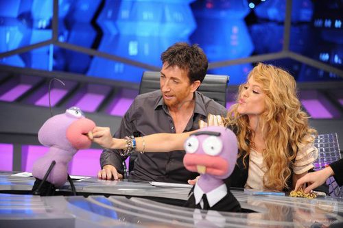 Paulina Rubio charla con Trancas y Barrancas en su visita a 'El Hormiguero'.