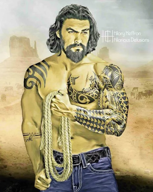 Khal Drogo (Jason Momoa) de 'Juego de Tronos' tatuado en el Gran Cañón del Colorado, ilustración de Hilary Heffron.