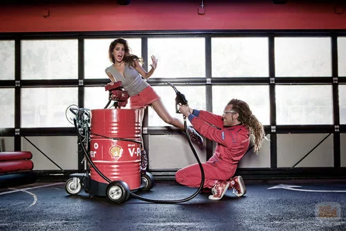 La colaboradora de 'Así nos va' posa entre bidones ante el ataque Torito.