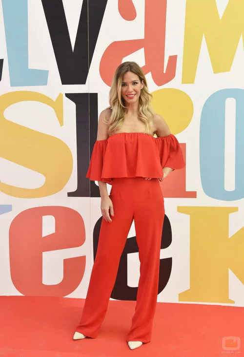 La colaboradora de televisión, Tamara Gorro, acudió a la segunda edición de la "Sálvame Fashion Week" con un mono rojo.