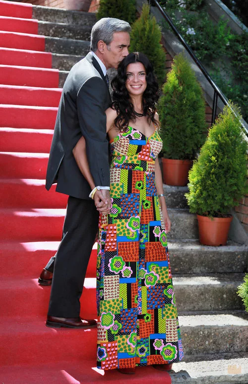 Beso de padre a hija entre Imanol Arias y Pilar Punzano, Antonio e Inés Alcántara, en 'Cuéntame cómo pasó'.