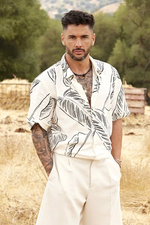 El exparticipante de 'La isla de las tentaciones 2' guarda las manos en su bolsillo mientras posa como concursante del reality de Telecinco y Fremantle.
