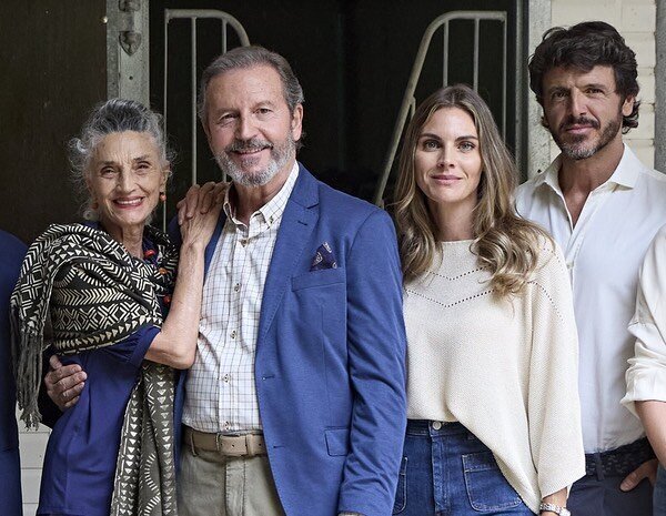 Los actores de 'Pura Sangre', como Aitor Luna, Amaia Salamanca o Ángela Molina, posan en un descanso del rodaje.