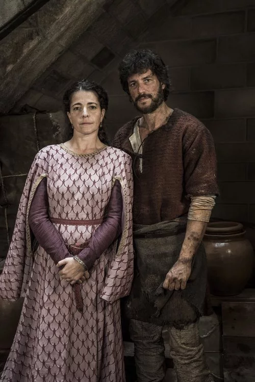 Posado de Daniel Grao y Nora Navas en 'La catedral del mar', caracterizas por sus personajes Bernat y Giamona. Él es el soltero de oro de la comarca. Ella es hermana de Bernat y esposa de Grau Puig