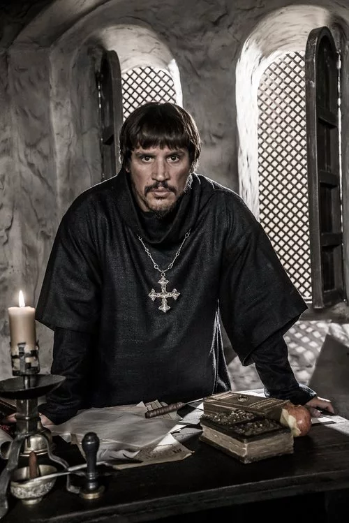 Sergio Peris en 'La catedral del mar', caracterizado de su personaje Nicolau Emeric, un religioso muy severo.