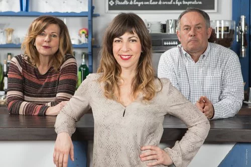 Sabino, Bego y su hija Miren posan en el restaurante Kaia con motivo de las fotos promocionales de la cuarta temporada.