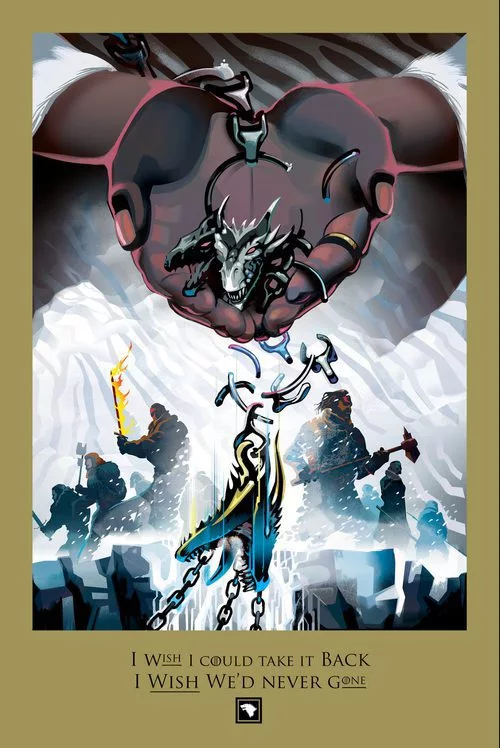 Póster conmemorativo del 7x06 de 'Juego de Tronos' elaborado por el artista Robert Ball. Hace referencia a la muerte y conversión en Caminante Blanco de Viserion.