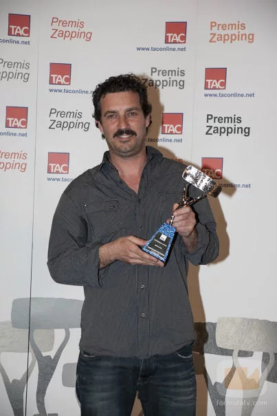 El protagonista de la serie 'Kubala, Moreno i Manchón' (KMM), de TV3, posa con su estatuilla.