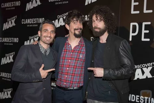 Juan, Damián y Marron en la premiere de 'Clandestino con David Beriain'