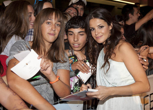 La actriz Marta Torné se hace una foto con algunos fans a su llegada al FesTVal de Vitoria de 2010.