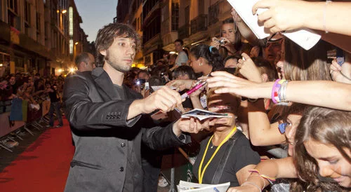 El actor Raúl Fernandez de Pablo, de 'El internado', firma autógrafos a unos fans a su llegada al FesTVal de Vitoria de 2010.