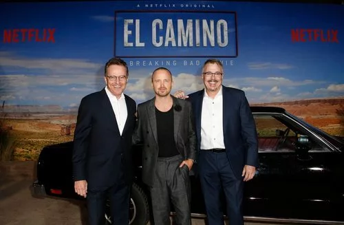Bryan Cranston, Aaron Paul y Vince Gilligan en la premiere de 'El Camino: Una película de Breaking Bad'