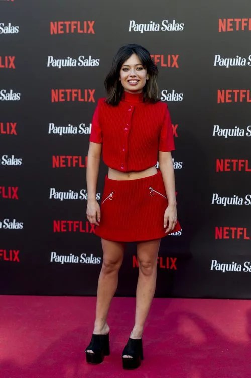 Anna Castillo en la premiere de la segunda temporada de 'Paquita Salas', posa sonriente con un look rojo muy llamativo