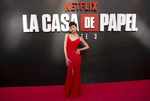 La actriz, que interpreta a Tokio, posa ante los medios en la alfombra roja de la Parte 3 de la 'La Casa de Papel'.
