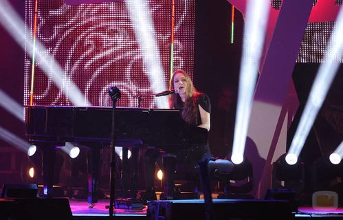 La cantante internacional en un instante de su actuación durante los premios en el que cantó uno de sus mayores éxitos acompañada por un piano