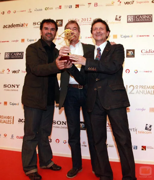 El equipo de 'Españoles en el mundo' con su Premio AcademiaTV 2010 al mejor documental.