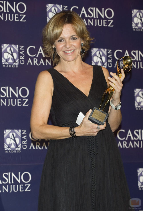 La periodista de TVE Almudena Ariza posa con su Premio Antena de Oro 2010.