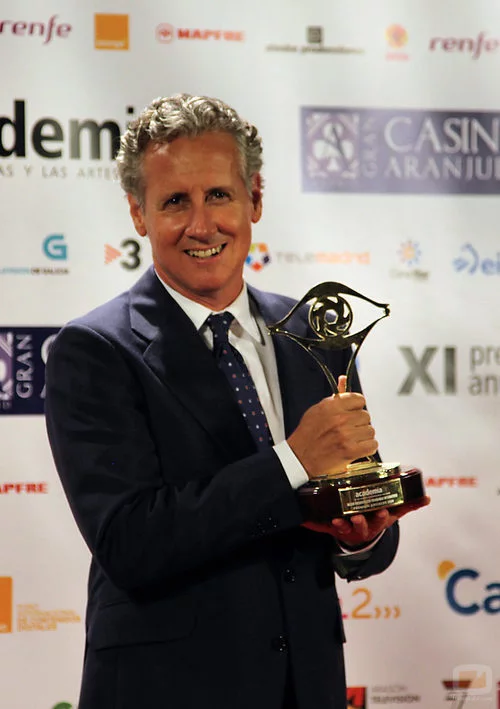 Lorenzo Milá posa con su Premio ATV 2009 al Mejor presentador de informativos .