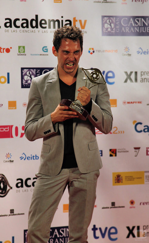 El actor Paco León posa con su Premio ATV 2009 al mejor actor.