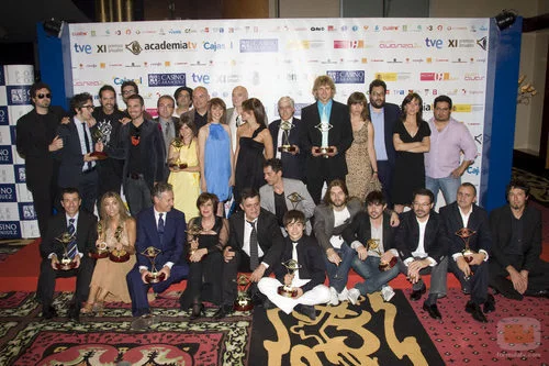 Foto de familia con todos los premiados en la Gala de la Academia de la Televisión 2009.