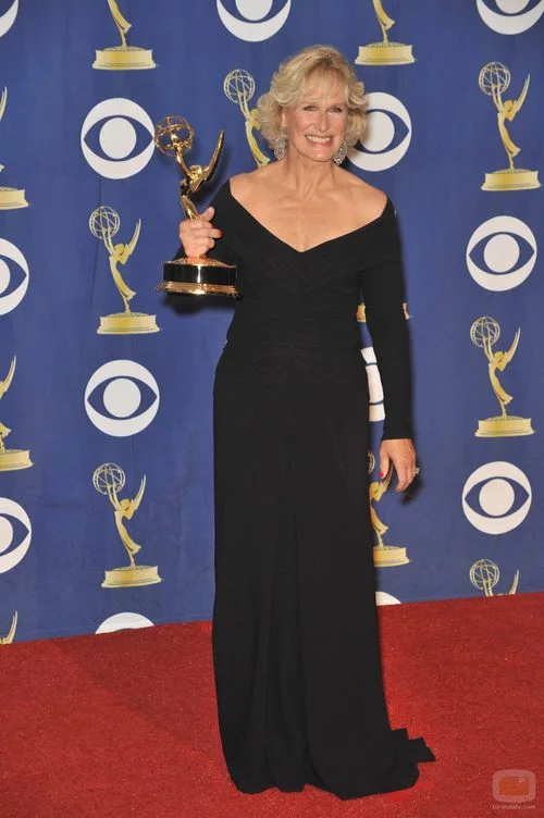 Glenn Close ('Damages') posa sonriente tras ganar Premio Emmy a la Mejor Actriz Dramática.