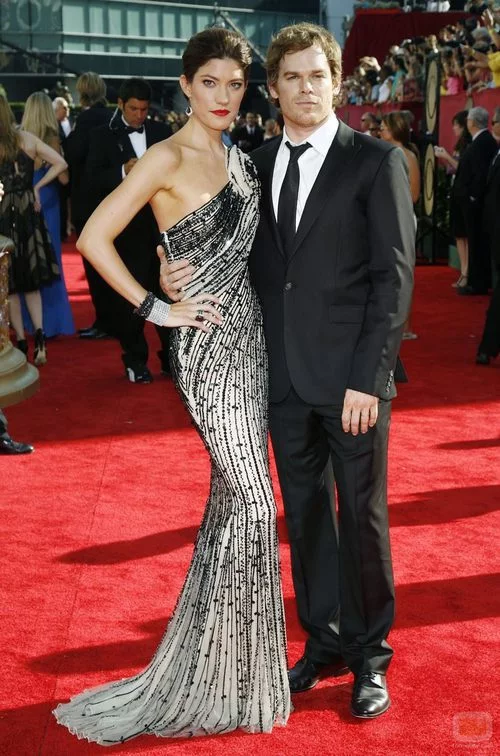 Jennifer Carpenter y Michael C. Hall (de 'Dexter') a su llegada a los Premios Emmy 2009 .