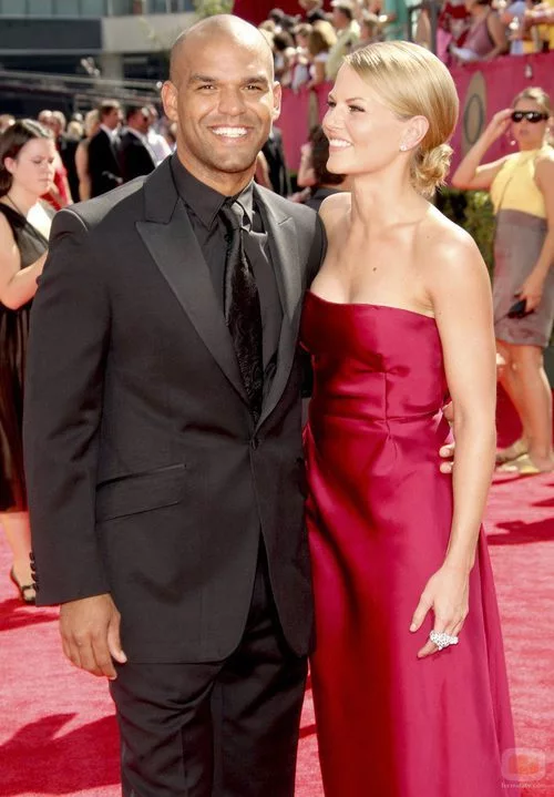 Jennifer Morrison (de 'House') con su pareja Amaury Nolasco (de 'Prison Break') en la alfombra roja de los Emmy 2009.