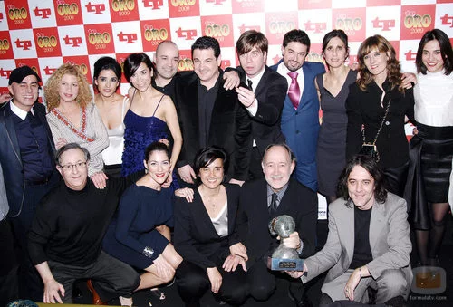 El equipo de la serie 'Amar en tiempos revueltos' posa con el Premio TP 2009 al Mejor Serial o Telenovela.