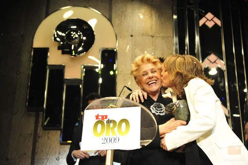 Lola Herrera, junto a su hija, Natalia Dicenta, tras recibir el Premio Toda una vida en la Gala de los Premios TP de Oro 2009 en Pachá.