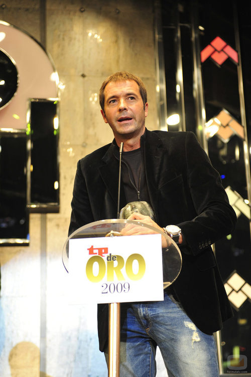 El presentador Manu Carreño recibe el Premio al Mejor Programa de Deportes en los TP de Oro 2009 en la Discoteca Pachá de Madrid.